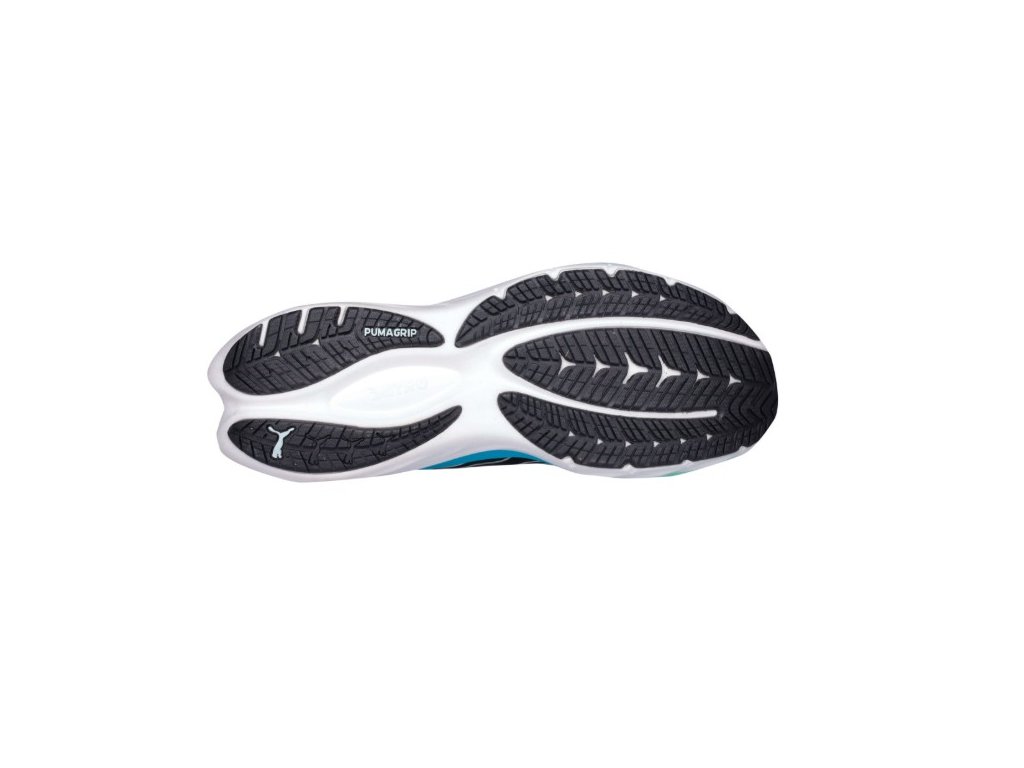 Podešev s technologií PUMAGRIP garantuje spolehlivou trakci na suchu i mokru a obstojí i v lehkém terénu. Drop 10 mm a mírně zakřivená špička napomáhají plynulému přechodu od došlapu k odrazu.
