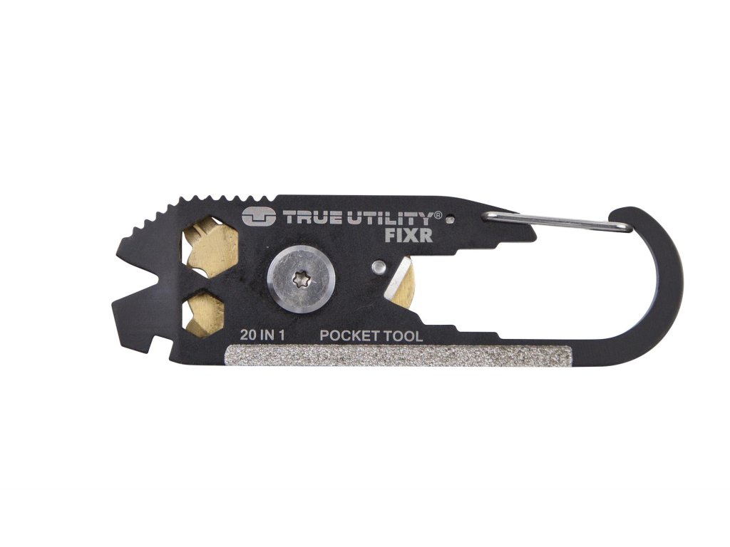 Tento patentovaný karabinový nástroj True Utility FIXR - multináradí 20 v 1 - jednoduše připevníte ke své klíčence nebo tašce.