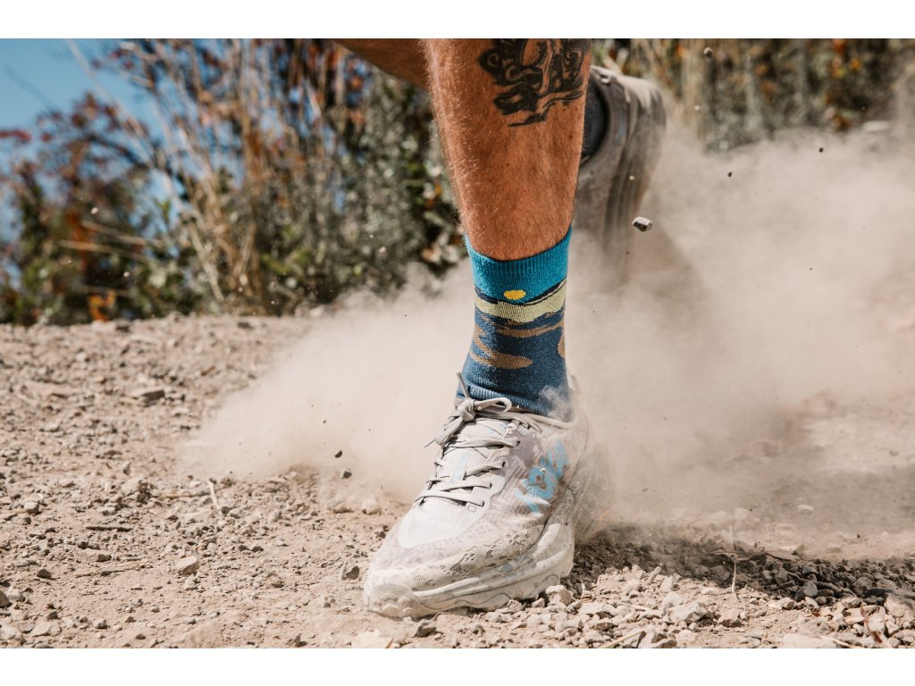Ultralehké kotníkové ponožky z jemného materiálu s vyšším podílem merina. Perfektně přiléhají k noze, nárt je žebrovaný a obzvlášťě prodyšný, spodek ponožky zase obsahuje podporu klenby, která pomáhá tlumit únavu a otřesy. Pevný horní lem zabráňuje kamínkům a dalším nečistotám, aby se dostaly dovnitř. Ponožky v botě nekloužou, neshrnují se a díky merinu nezapáchají ani po vysoce intenzivní aktivitě. Díky těmto vlastnostem můžete zapomenout na puchýře i otlaky a bezstarostně si užívat běhu.